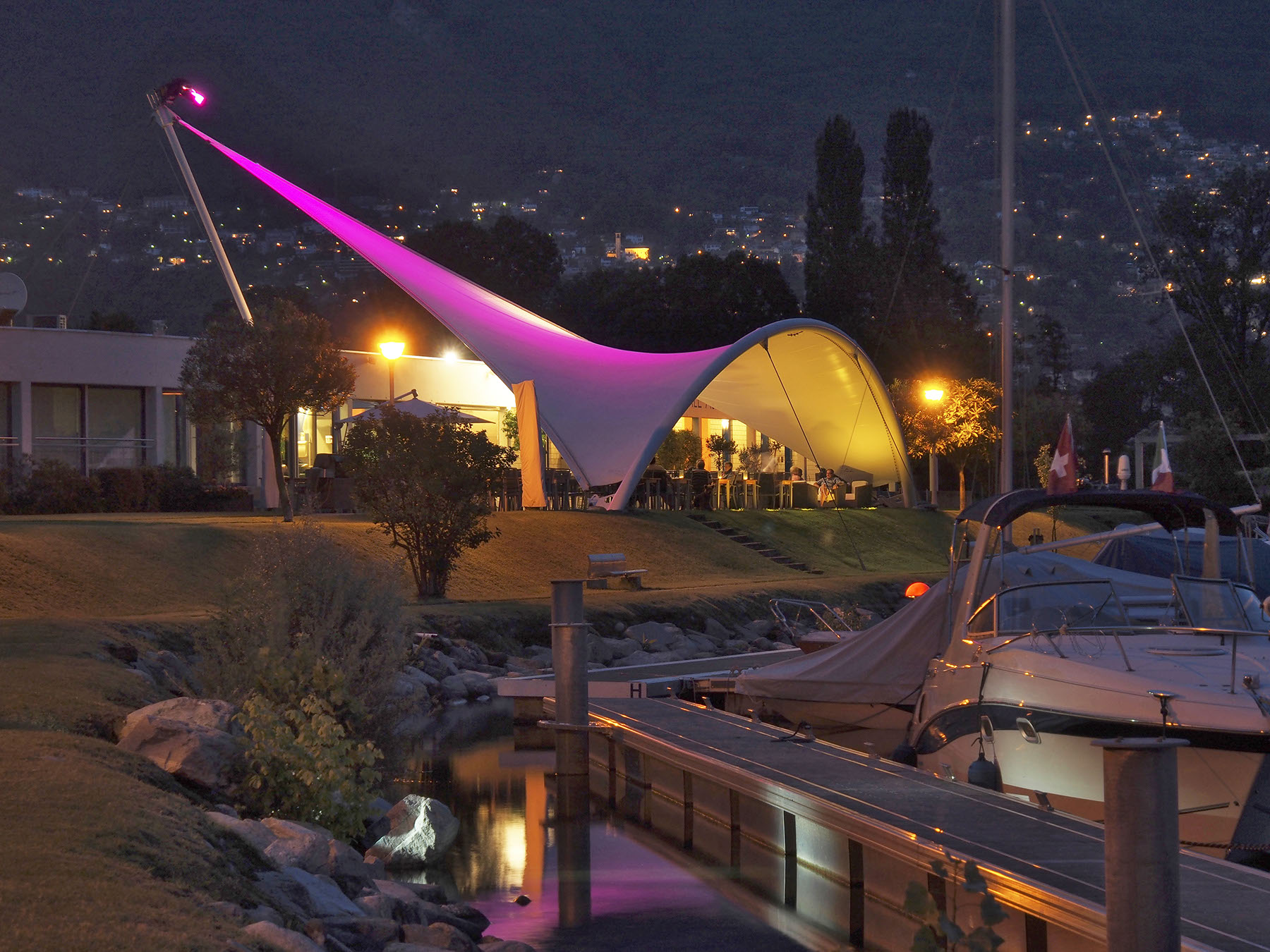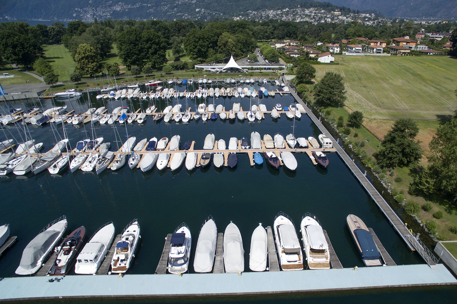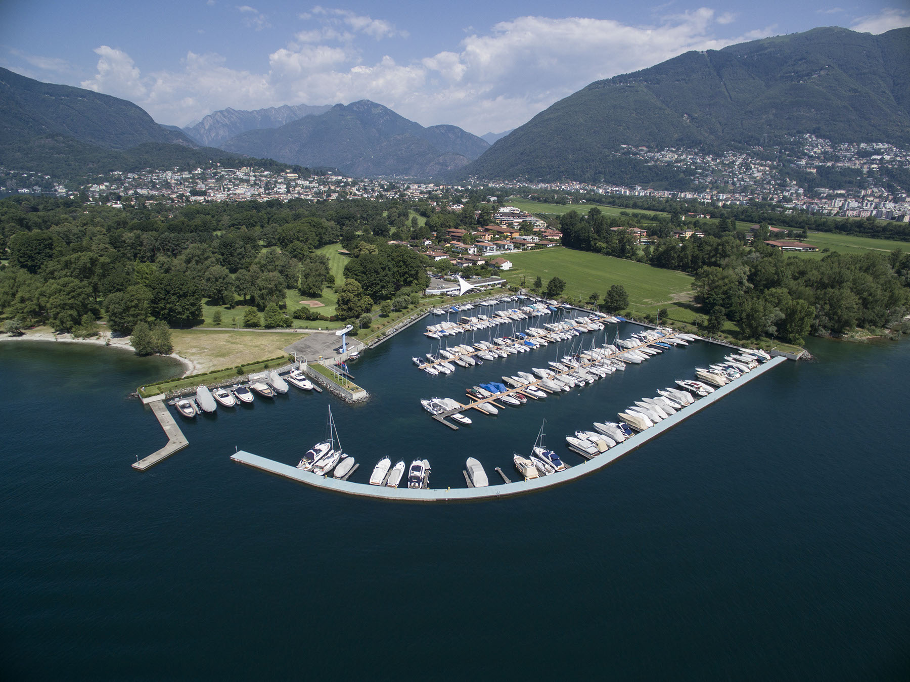 Perfettamente inserito nel delta della Maggia, il Porto Patriziale di Ascona è un complesso dedicato ai più esigenti amanti del lago, in grado di unire stile, comodità e innovazione. La struttura, completamente galleggiante, si trova nella zona Segnale che fino al 1993 ospitava il campeggio Al Segnale attivo e apprezzato fin dagli anni ‘50, il periodo che per il locarnese ha significato rilancio dell’attività turistica dopo la lunga pausa bellica.