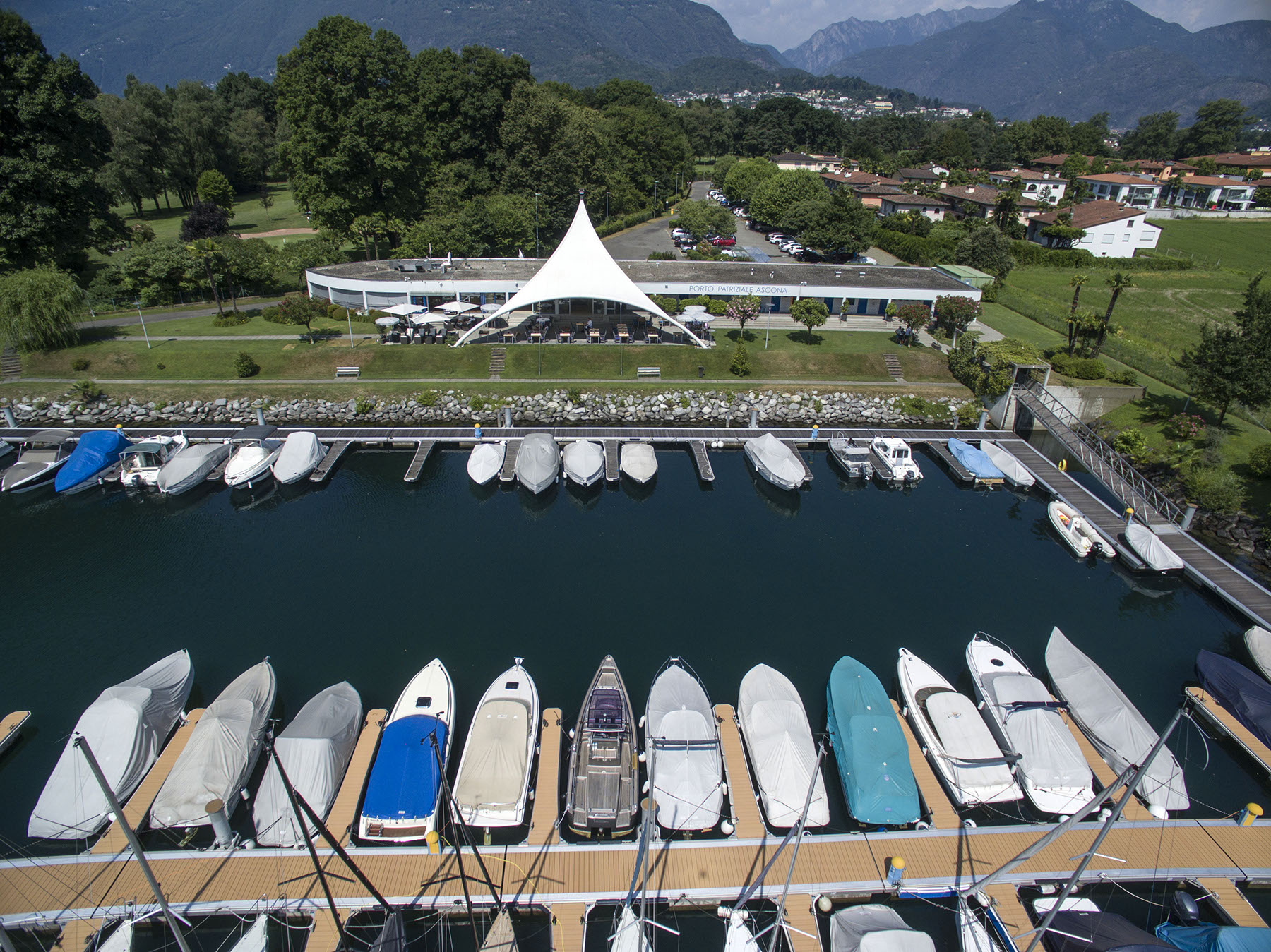 Perfettamente inserito nel delta della Maggia, il Porto Patriziale di Ascona è un complesso dedicato ai più esigenti amanti del lago, in grado di unire stile, comodità e innovazione. La struttura, completamente galleggiante, si trova nella zona Segnale che fino al 1993 ospitava il campeggio Al Segnale attivo e apprezzato fin dagli anni ‘50, il periodo che per il locarnese ha significato rilancio dell’attività turistica dopo la lunga pausa bellica.