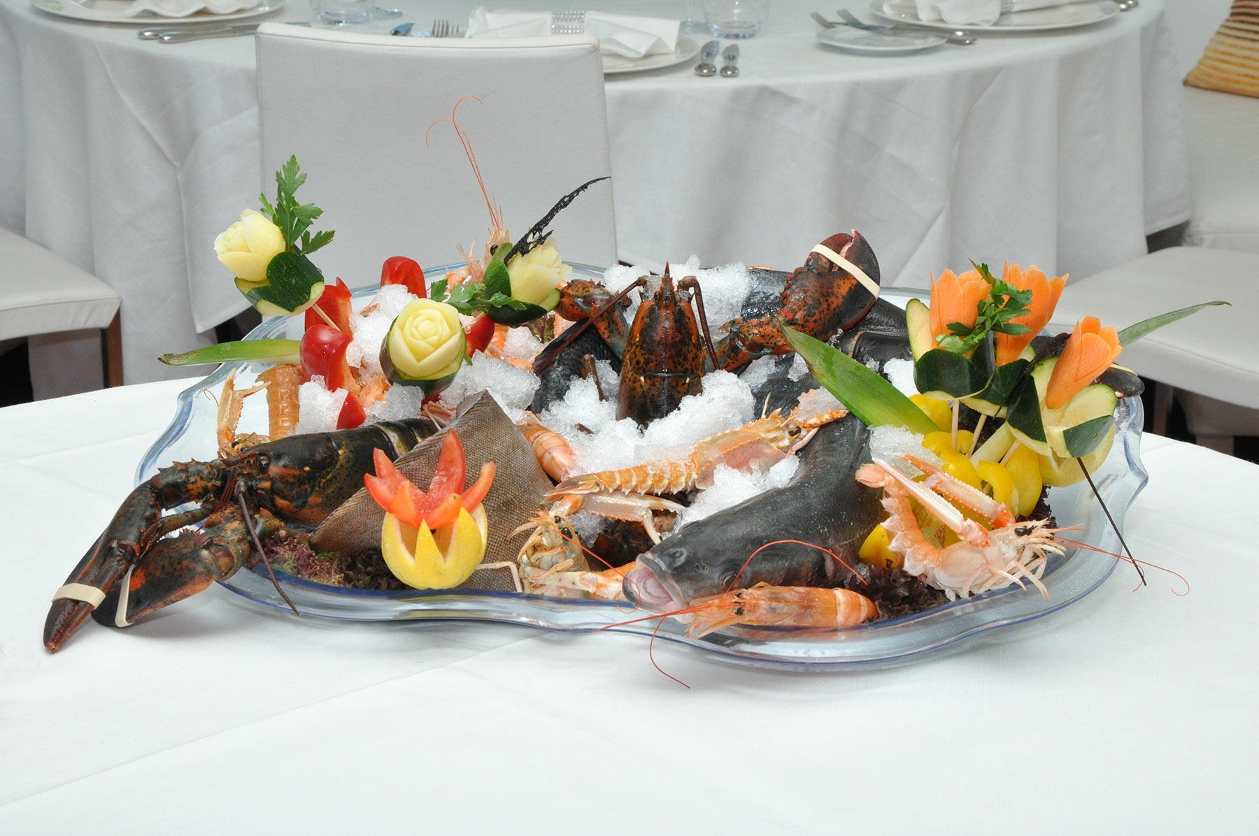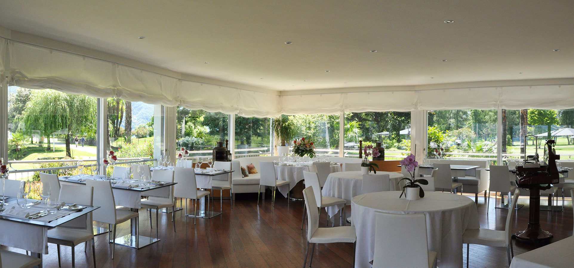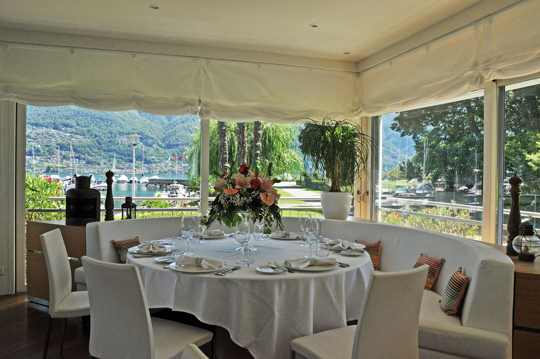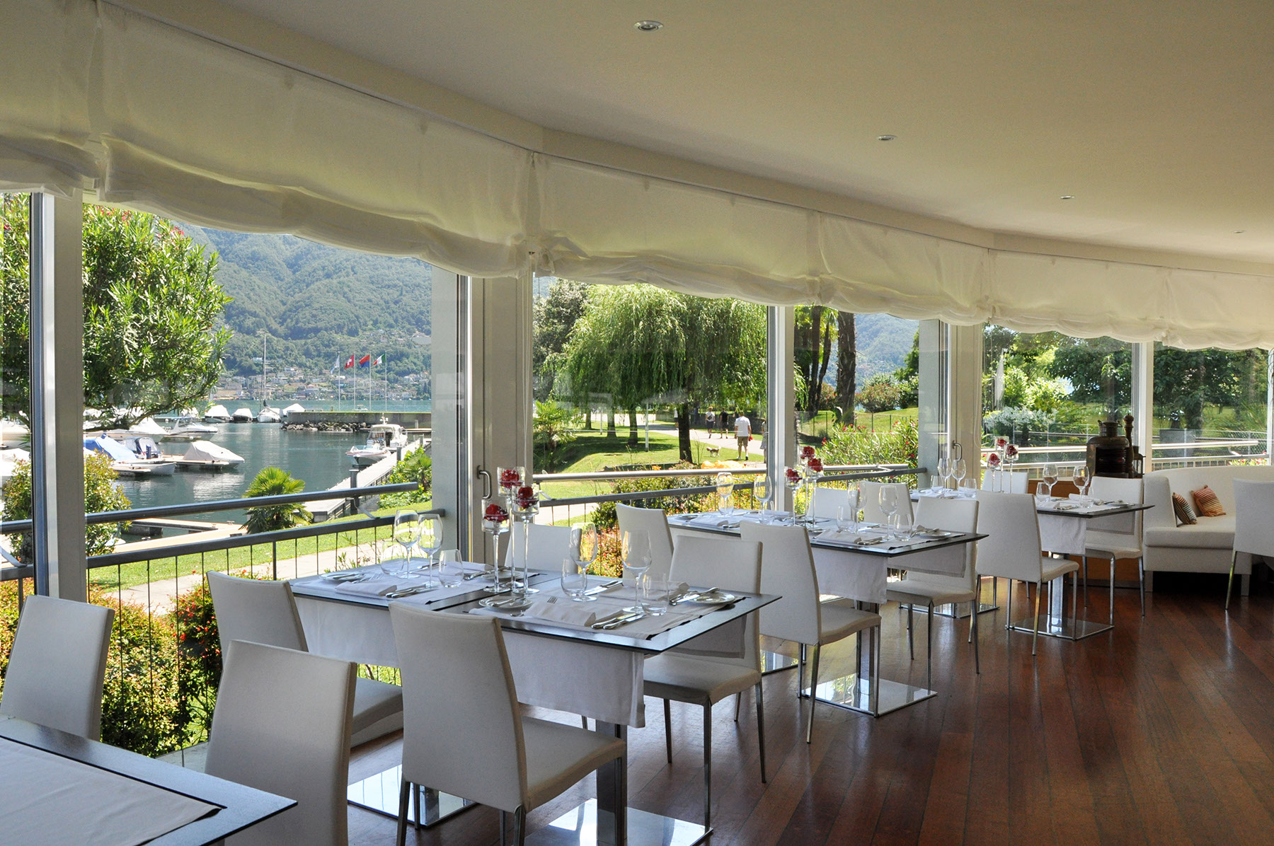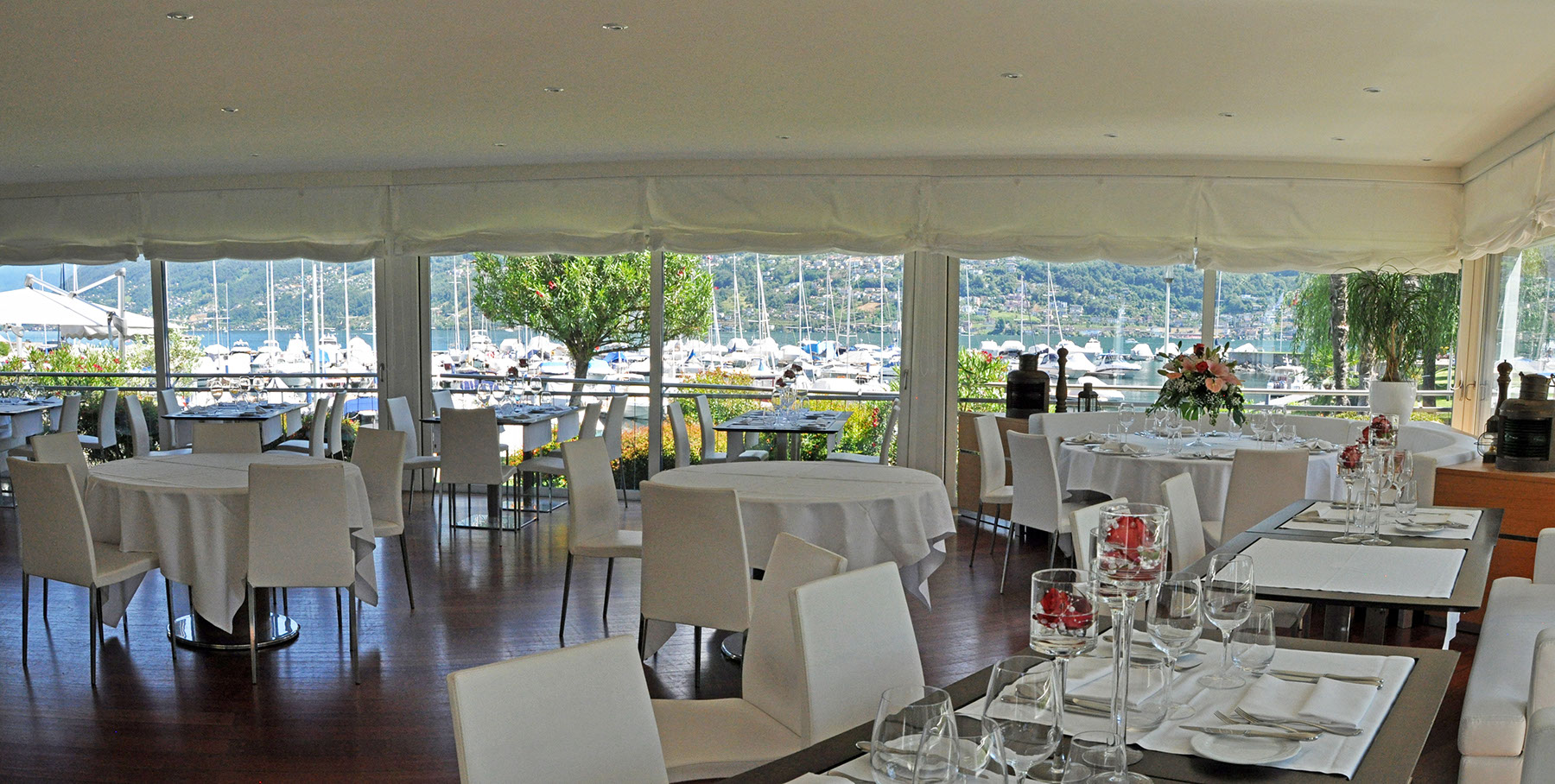 Una splendida sala si affaccia sul meraviglioso panorama del lago e su una terrazza all'ombra di una suggestiva vela bianca che offre una vista unica sul porto. Il ristorante offre una raffinata cucina con una carta menù variata, ricca d'insalate, primi piatti, carni e pesci.